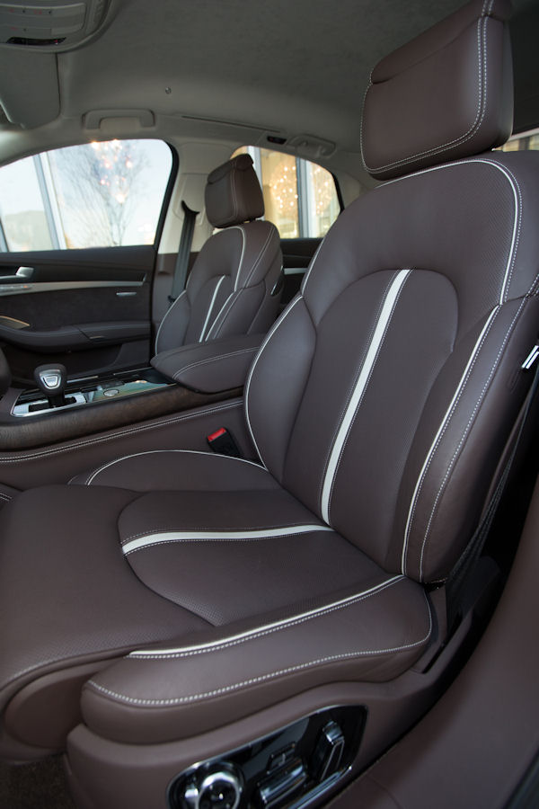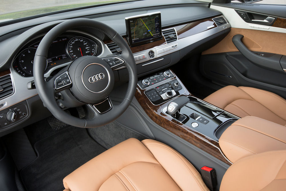 Wszystkie elementy charakteryzują się nienaganną jakością wykończenia. Każdy detal Audi A8 jest dowodem wysokiej jakości ręcznej roboty. Oferta obić, listew dekoracyjnych czy kolorów jest teraz jeszcze bardziej ekskluzywna. Najlepszy przykład oferowanych nowości to wytwarzana w ekologiczny sposób skóra o nazwie „unikat”, która doskonale oddycha i wygląda bardzo naturalnie. Nowością, jeśli chodzi o dekoracyjne wykończenia, są zastosowane cenne forniry: drewno topolowe w kolorze brązowo-srebrnym i drewno jesionowe w kolorze brązowo-złotym, które uszlachetniono srebrem lub złotem.