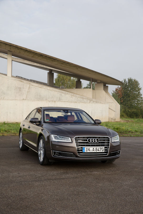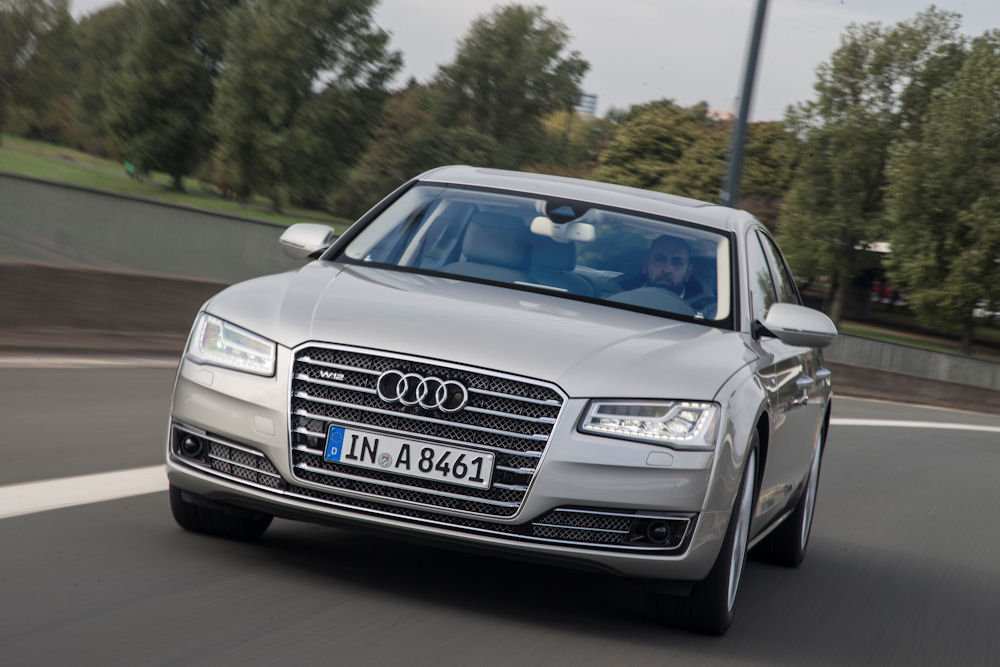 W prawie wszystkich silnikach wzrosła moc, a bez wyjątku zmalało zużycie paliwa – aż o dziesięć procent. Audi A8 z silnikiem 4.0 TFSI od zera do 100 km/h przyspiesza w 4,5 sekundy. System Audi cylinder on demand (COD) odłącza przy obciążeniach częściowych cztery z ośmiu cylindrów. Najbardziej ekonomicznym silnikiem jest jednostka 3.0 TDI. Na 100 km zużywa średnio jedynie 5,9 litra oleju napędowego (155 g CO2 na km). Wszystkie jednostki napędowe spełniają europejski standard emisji spalin Euro 6.