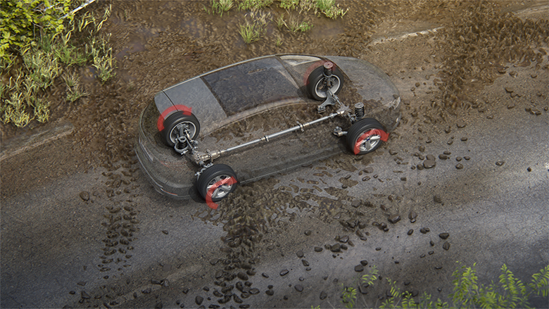 • System AWD zapewnia maksymalną przyczepność oraz najlepszą prędkość pokonywania łuku i przyspieszeniem na wyjściu z zakrętu